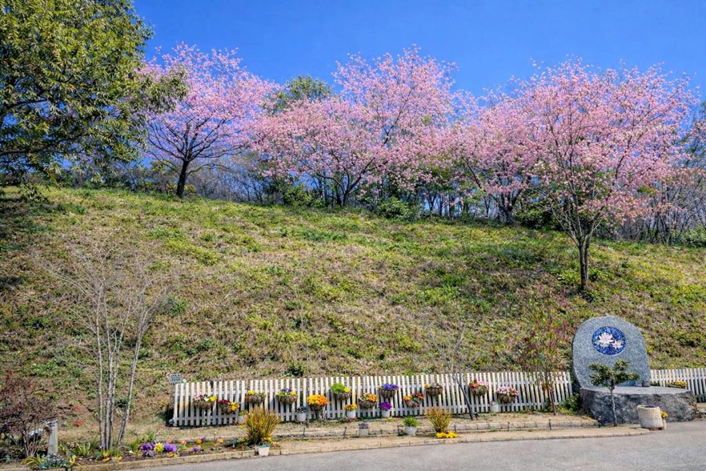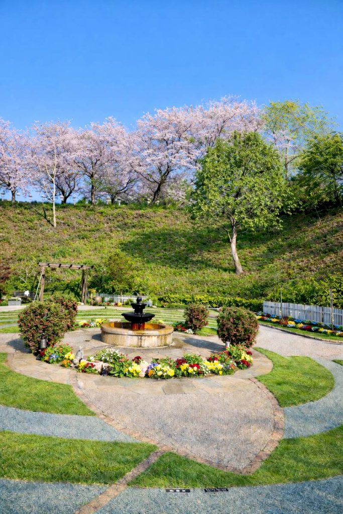 桜の下の墓苑をお楽しみください。